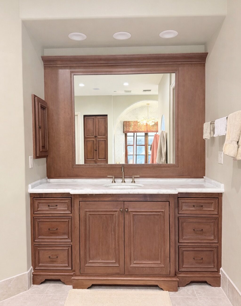 - New mirrors and cabinet hardware